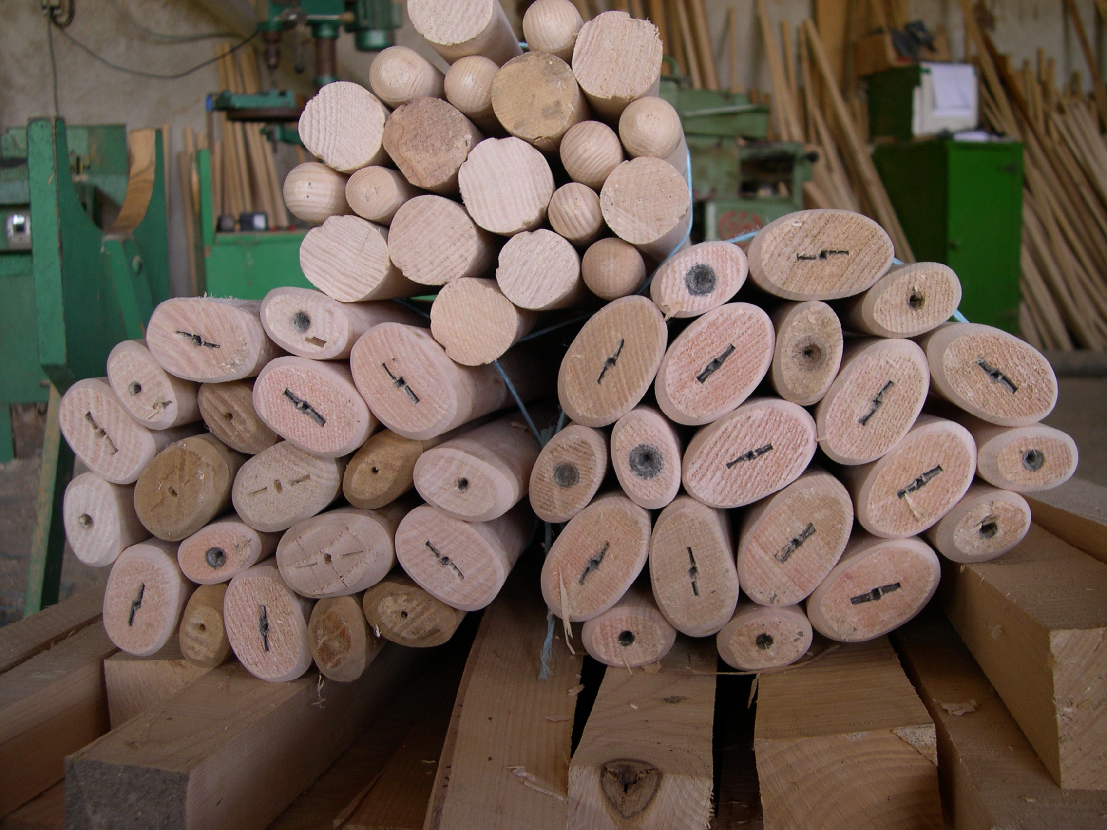 -le tournage de bois ronds pour les manches classiques comme les rateaux, les balais, les pioches……